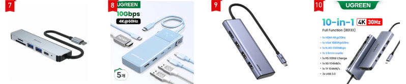 USB-C 포트 하나에 허브를 연결하면 HDMI, USB-A, SD카드 리더, 유선랜 포트까지 문어발처럼 확장할 수 있습니다. 특히 4K 60Hz 출력을 지원하는 HDMI 포트가 있는 허브를 선택하면, 고해상도 모니터도 화질 저하 없이 깨끗하게 사용할 수 있습니다. 노트북 모니터 연결을 고민하는 슬림 노트북 사용자에게는 선택이 아닌 필수품이라 할 수 있습니다.